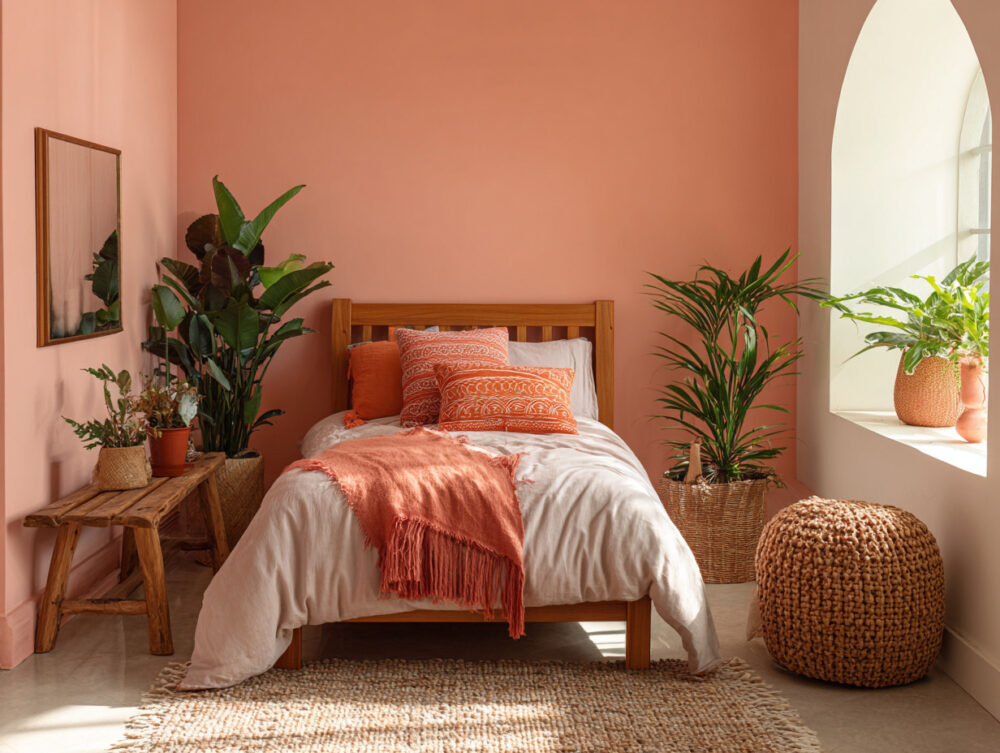 With a beautiful colour scheme the chosen room is on its way to emulating a tropical theme. The addition of woven baskets, sea shells, wicker furniture and other pieces associated with the Caribbean will help to evoke authenticity.