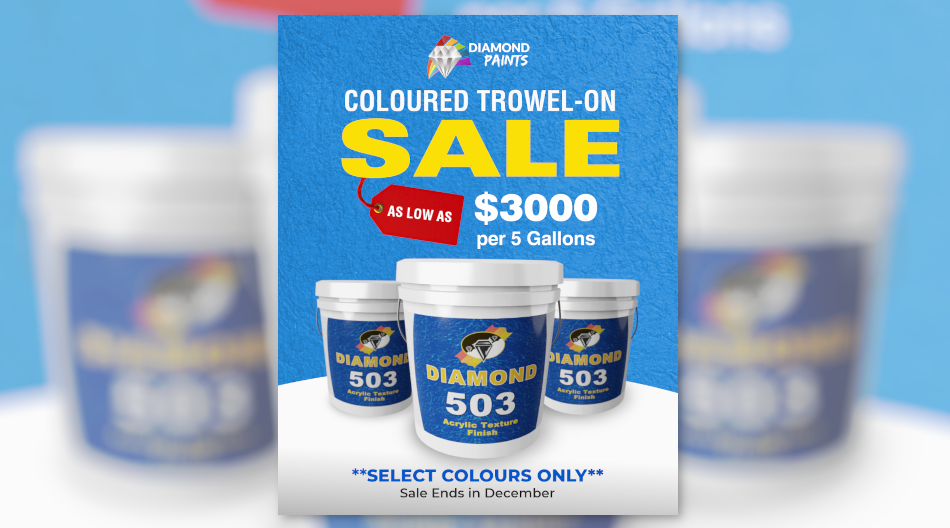 Come to Diamond Paint MFG at 67 Waltham Park Road and purchase select trowel on colours at unbeatable prices!! Sale ends in December!