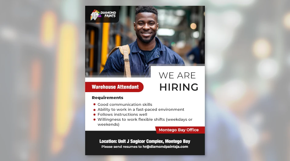 Diamond Paint MFG. Co. Ltd. is hiring a warehouse attendant for our Montego Bay Branch (located in Unit J, Sagicor Complex, Freeport). The ideal candidate should have a strong work ethic and be eager to contribute to a fast-paced manufacturing environment.